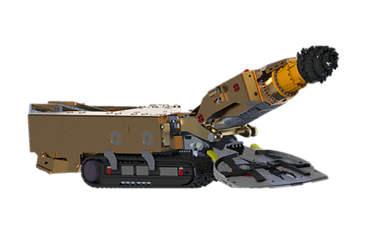 截割硬度高截割頭低轉(zhuǎn)速、大截割力、重機(jī)身,截割巖石硬度可達(dá)f10。